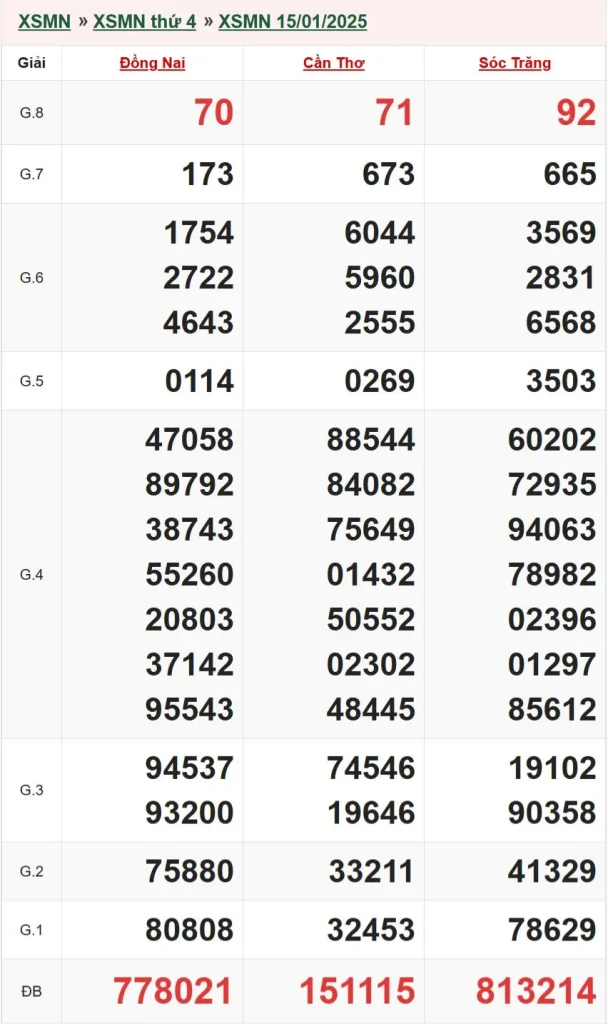 Chốt lô Tây Ninh đặc biệt ngày hôm nay 15/1/2025 như sau: